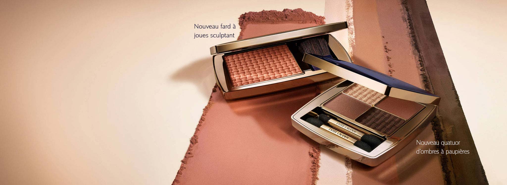Un duo Sculpter + Illuminer avec une teinte taupe mat frais pour souligner les contours et un illuminateur champagne chatoyant (nuance de fond neutre)